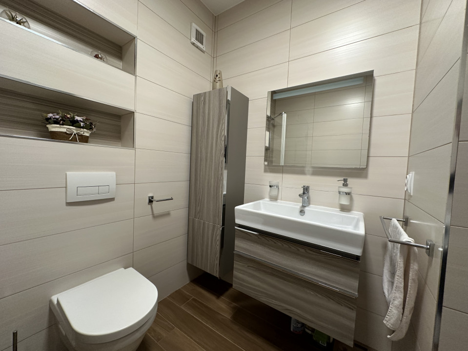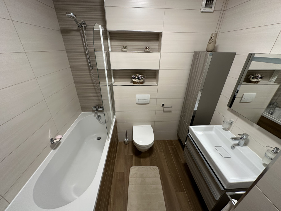 - Obiecte sanitare premium – duș, cadă, vas WC cu rezervor încastrat, lavoar, baterii baie;