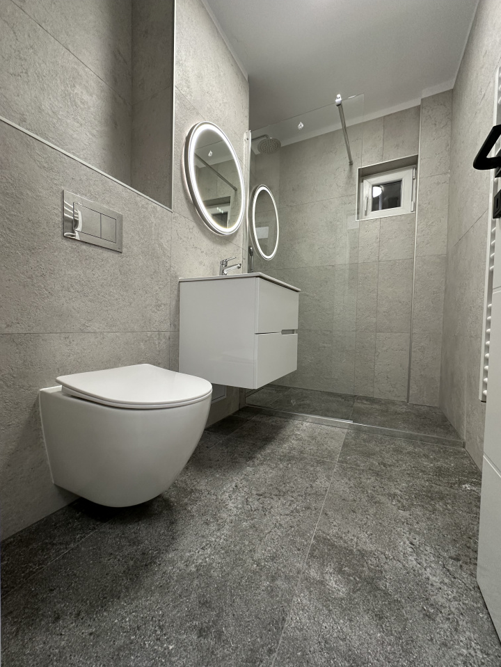 • Sistem sanitar: Duș tip walk-in, vas WC cu rezervor încastrat, obiecte sanitare din gama Premium.